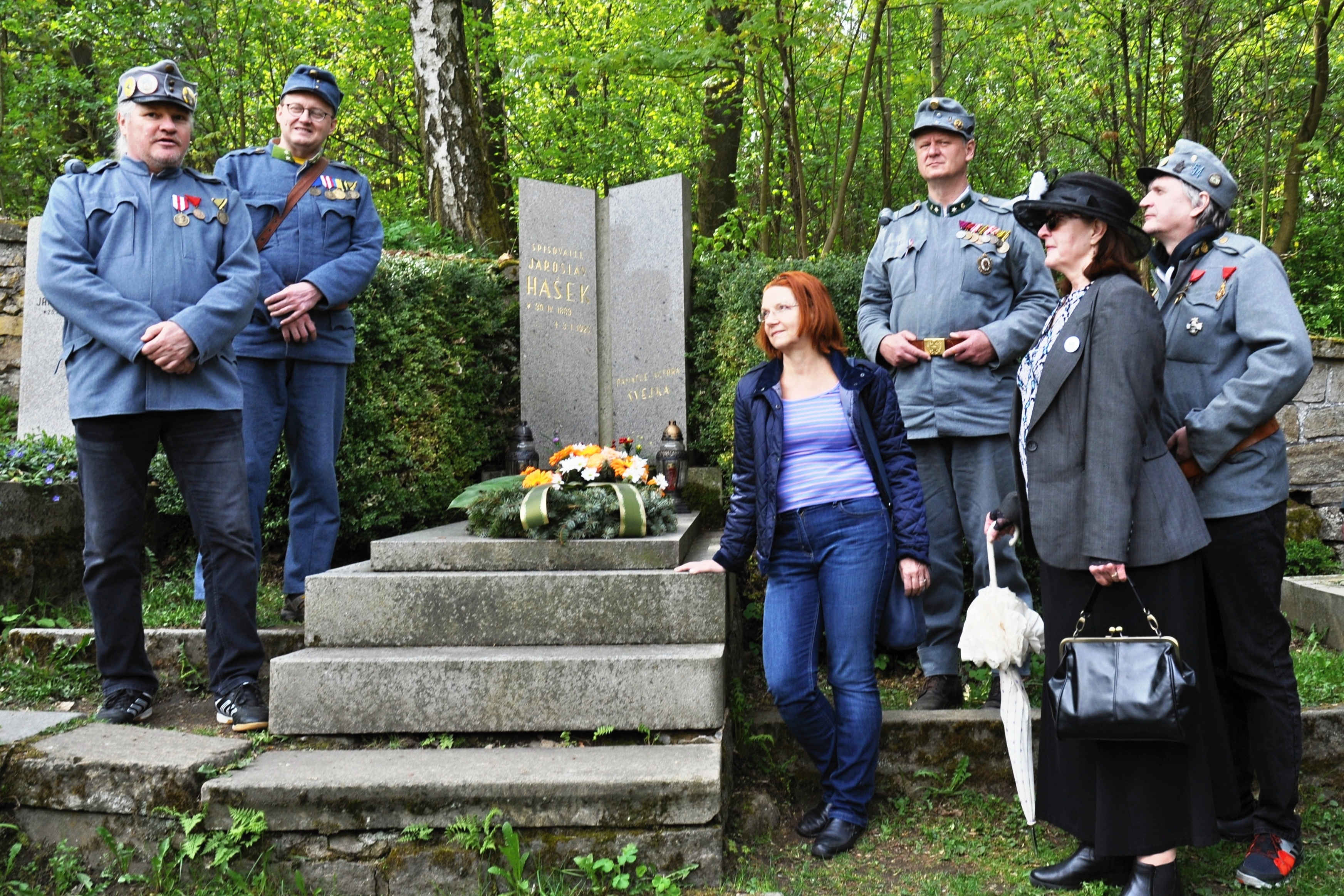 Lipnice 02 - Při cestě ke hrobu Jaroslava Haška provázeli Jomara Honsiho z Norska (na snímku vlevo) členové a sympatizanti kralupského spolku Haškových přátel